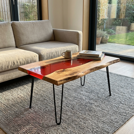 Tavolo in Legno e Resina Rossa - 60x30cm